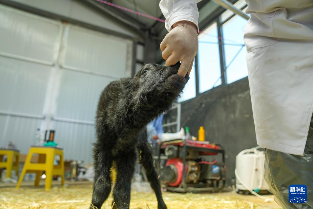 記者7月11日從西藏(當雄)金絲野牦牛繁育基地了解到,10日中午12時40分,該基地剖腹誕生了第一頭克隆牦牛。這頭新出生的克隆牛犢個頭比正常新生牛犢較大,全身通黑,能夠正常行走,目前身體狀況良好。
