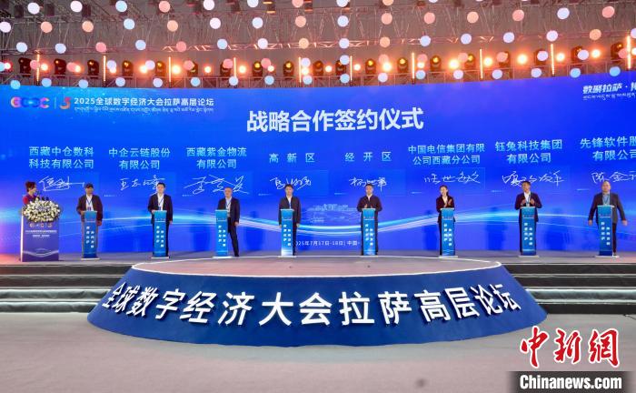 圖為2025全球數(shù)字經(jīng)濟(jì)大會(huì)拉薩高層論壇政企戰(zhàn)略合作簽約儀式現(xiàn)場(chǎng)。 杰布 攝