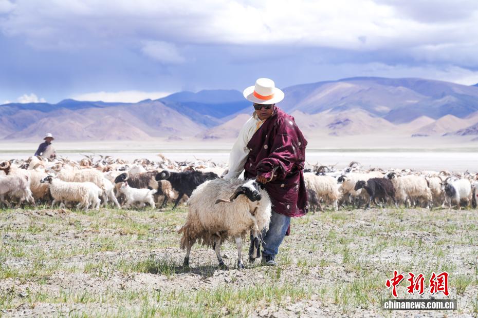 7月20日,在西藏阿里地區(qū)革吉縣鹽湖鄉(xiāng),牧民從羊群中牽引一只將要馱負(fù)鹽袋的羊。一千多年前,阿里地區(qū)有50多家駐扎的鹽幫,將自然鹽用羊馱牛背邊放牧邊運(yùn)輸?shù)姆绞?,運(yùn)送到普蘭、日喀則、印度、尼泊爾等地,并用以物易物的方式換回青稞、磚茶、布料等日常生活所需的物品,從而孕育了遠(yuǎn)負(fù)盛名的“鹽羊古道”傳奇。近年來(lái),當(dāng)?shù)亻_(kāi)辦粗鹽巴加工廠、打造“鹽羊古道”旅游品牌等方式,使千年“鹽羊古道”煥發(fā)新生機(jī)。中新社記者 張祥毅 攝
