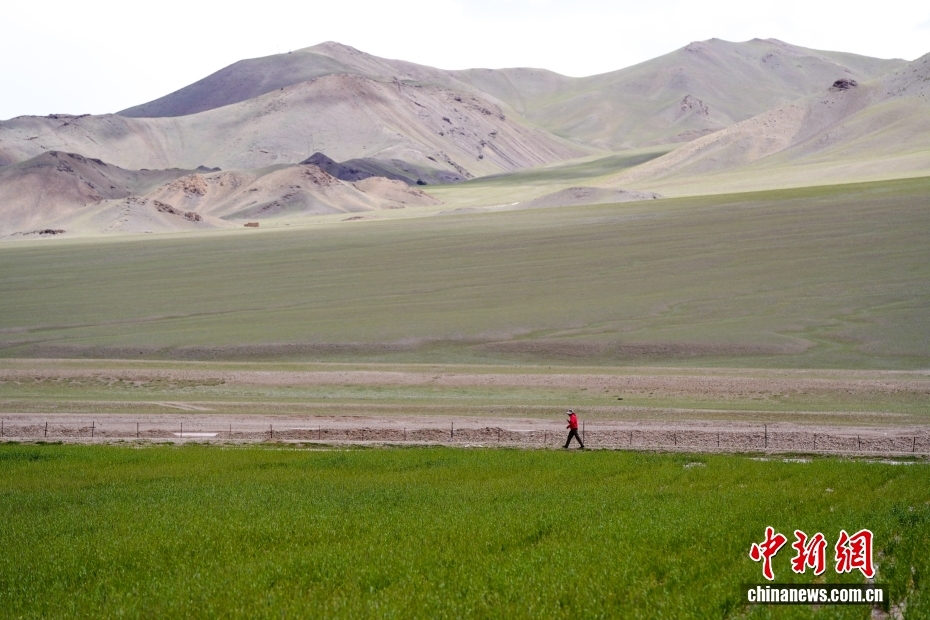 7月20日,在西藏阿里地區(qū)革吉縣文布當桑鄉(xiāng)的人工種草基地,一位農(nóng)牧民在巡視草場。為解決當?shù)囟旧笥貌堇щy,減輕天然草場壓力,2016年起文布當桑鄉(xiāng)規(guī)劃建設人工種草基地。截至2024年,已種植人工草場3590畝,草業(yè)收入229.3萬元人民幣,有效帶動當?shù)剞r(nóng)牧民就業(yè)創(chuàng)收和推動生態(tài)可持續(xù)發(fā)展。中新社記者 張祥毅 攝