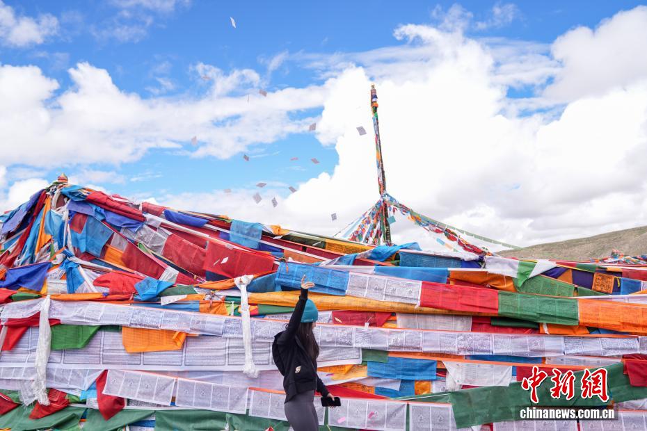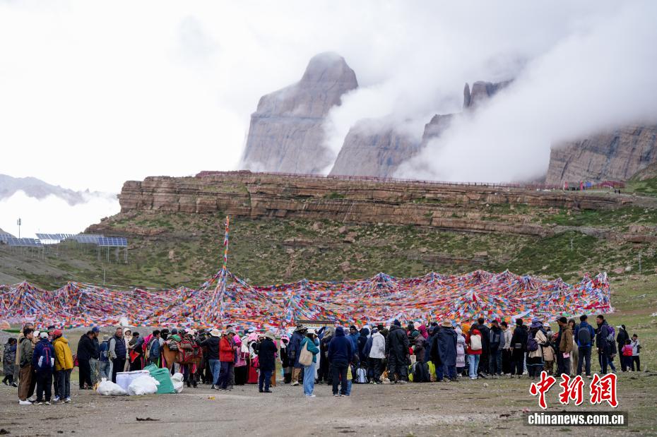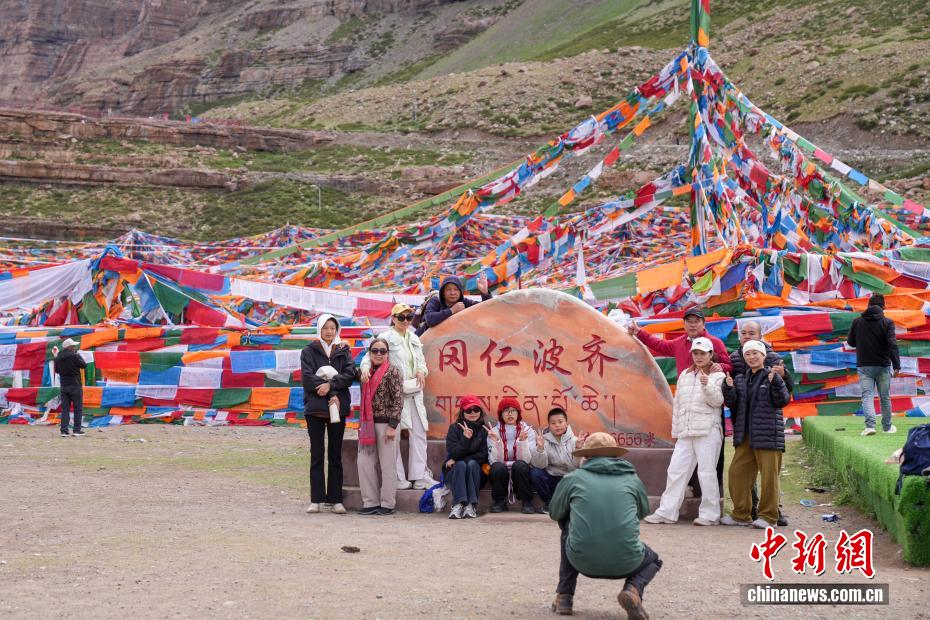 7月21日,游客在岡仁波齊山腳下的經幡廣場打卡拍照。岡仁波齊位于西藏阿里地區(qū)普蘭縣境內,是岡底斯山的主峰,也是藏傳佛教的神山之一,每年吸引眾多信徒前往轉山,并衍生出徒步旅行的經典路線。每年來自國內外的徒步旅行者為當?shù)貏?chuàng)造就業(yè)機會的同時,也推動了文旅產業(yè)的發(fā)展。中新社記者 張祥毅 攝