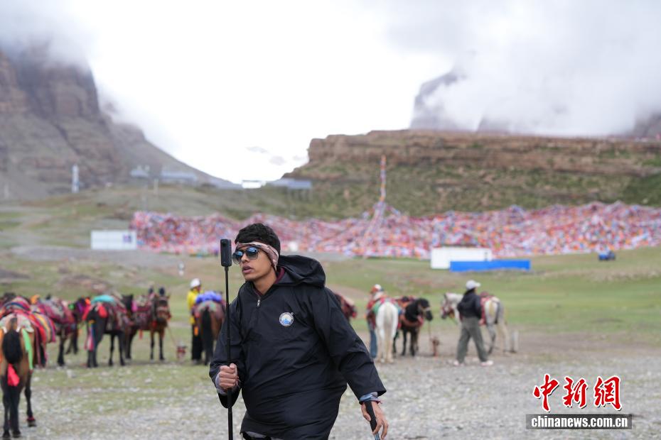 7月21日,一位來自印度的徒步旅行者在岡仁波齊山腳拍攝徒步視頻。岡仁波齊位于西藏阿里地區(qū)普蘭縣境內,是岡底斯山的主峰,也是藏傳佛教的神山之一,每年吸引眾多信徒前往轉山,并衍生出徒步旅行的經典路線。每年來自國內外的徒步旅行者為當?shù)貏?chuàng)造就業(yè)機會的同時,也推動了文旅產業(yè)的發(fā)展。中新社記者 張祥毅 攝