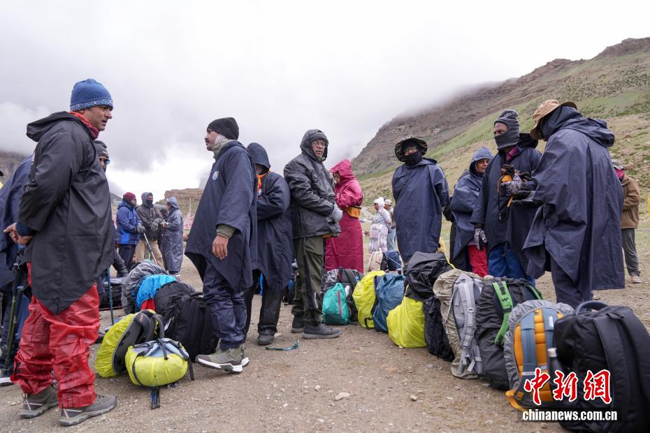 7月21日,在岡仁波齊山腳下,來自印度的徒步旅行者做出發(fā)前的準備工作。岡仁波齊位于西藏阿里地區(qū)普蘭縣境內,是岡底斯山的主峰,也是藏傳佛教的神山之一,每年吸引眾多信徒前往轉山,并衍生出徒步旅行的經典路線。每年來自國內外的徒步旅行者為當?shù)貏?chuàng)造就業(yè)機會的同時,也推動了文旅產業(yè)的發(fā)展。中新社記者 張祥毅 攝