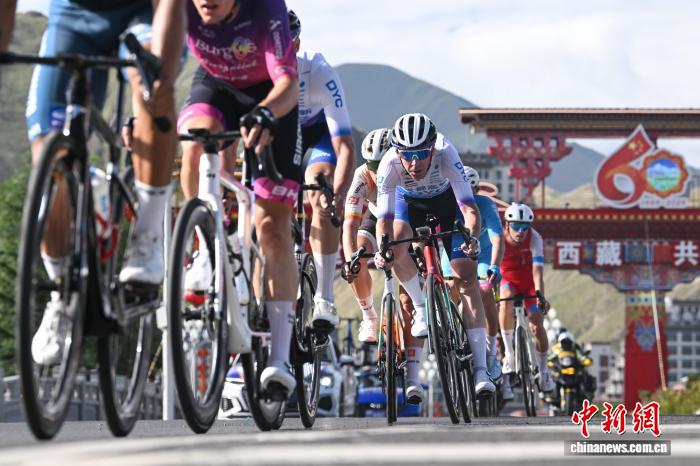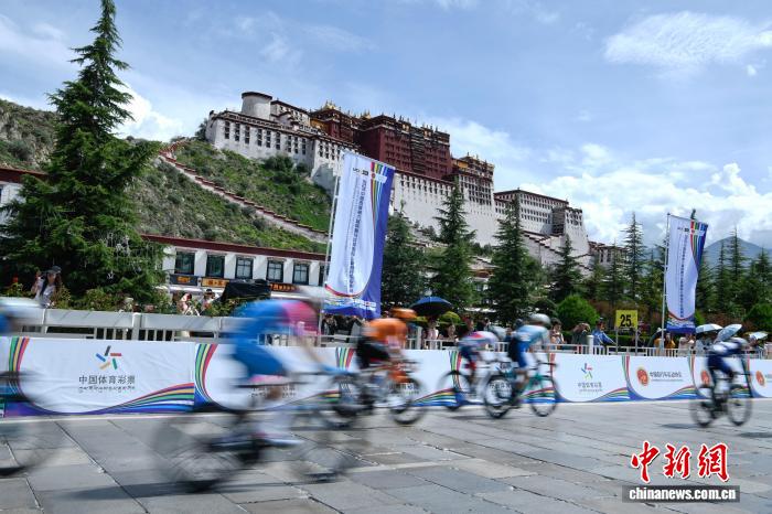 8月9日,2025中國西藏第六屆跨喜馬拉雅國際公路自行車極限賽拉薩賽段(第三賽段)完賽。本賽段為拉薩繞圈賽,起點拉薩市西藏博物館,終點布達(dá)拉宮廣場,全程約92.53公里。圖為參賽車手在比賽中。中新社記者 貢嘎來松 攝