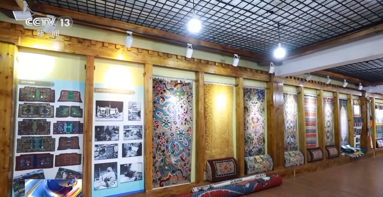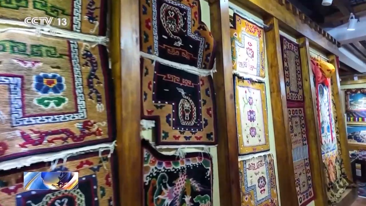 總臺央視記者 申楊:在這個藏毯陳列館,可以看到藏毯的前世今生。20世紀30年代到2010年時期藏毯的樣式,從顏色、造型、工藝上來講,變化并不大,真正發(fā)生變化是在2014年,藏毯的編織工藝有了新的突破。這幅布達拉宮立體編織圖,它是根據(jù)照片編織出來的,這種立體藏毯是怎么織出來的?