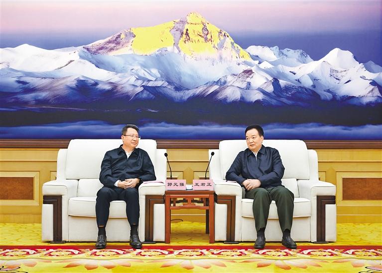 王君正代表自治區(qū)黨委、政府向郭元強(qiáng)一行表示歡迎,并簡(jiǎn)要介紹了西藏經(jīng)濟(jì)社會(huì)發(fā)展情況。他說(shuō),黨的十八大以來(lái),以習(xí)近平同志為核心的黨中央高度重視西藏工作,習(xí)近平總書(shū)記多次作出重要指示批示,確立了新時(shí)代黨的治藏方略,明確了“穩(wěn)定、發(fā)展、生態(tài)、強(qiáng)邊”四件大事,提出了長(zhǎng)治久安和高質(zhì)量發(fā)展的戰(zhàn)略目標(biāo),為我們做好西藏工作指明了前進(jìn)方向、提供了根本遵循。自治區(qū)黨委團(tuán)結(jié)帶領(lǐng)全區(qū)各族干部群眾,深入貫徹習(xí)近平總書(shū)記關(guān)于西藏工作的重要指示和新時(shí)代黨的治藏方略,持之以恒抓好“四件大事”落實(shí),推動(dòng)各項(xiàng)事業(yè)不斷取得新成效。