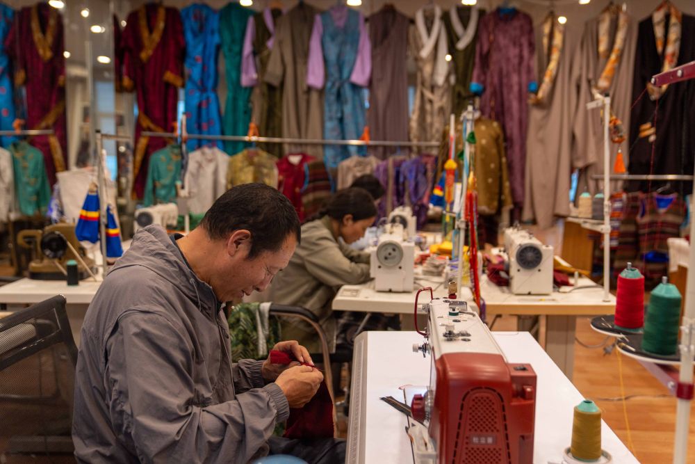 8月6日,服裝師在制作拉薩服飾。拉薩服飾入選西藏自治區(qū)級非物質(zhì)文化遺產(chǎn)代表性項目名錄。