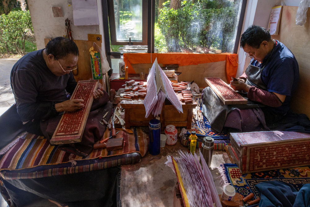 8月6日,雕刻師在工作中。西藏雪巴康雕版印刷制作技藝入選西藏自治區(qū)級非物質(zhì)文化遺產(chǎn)代表性項目名錄。