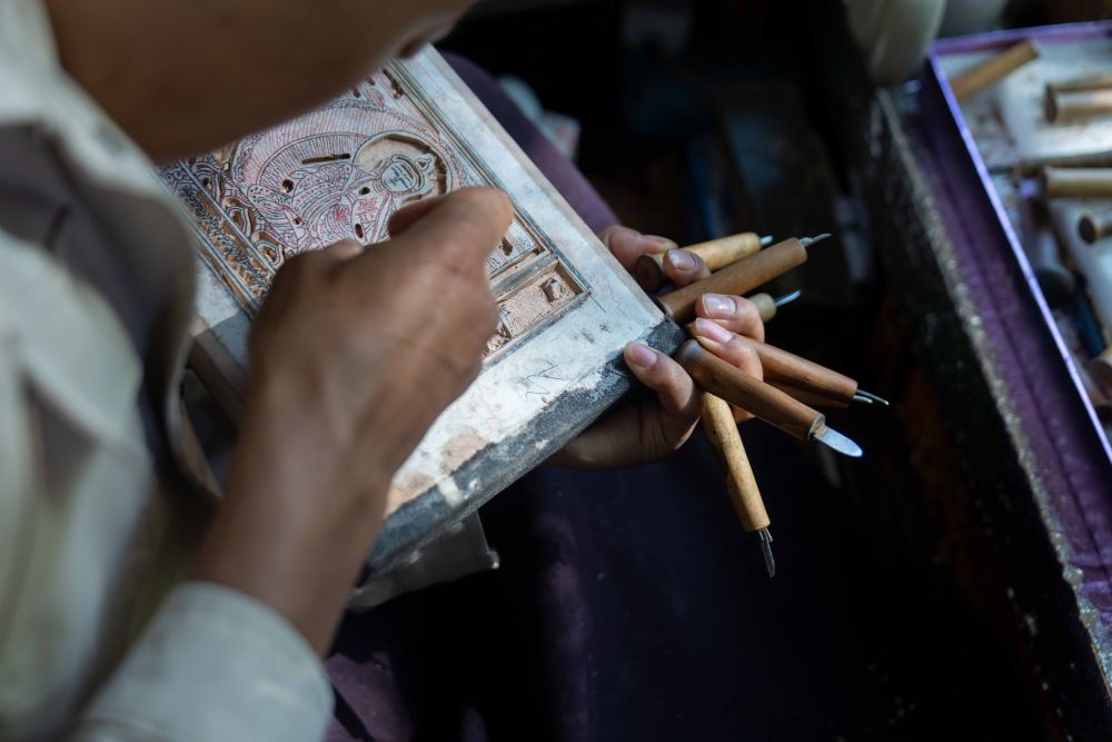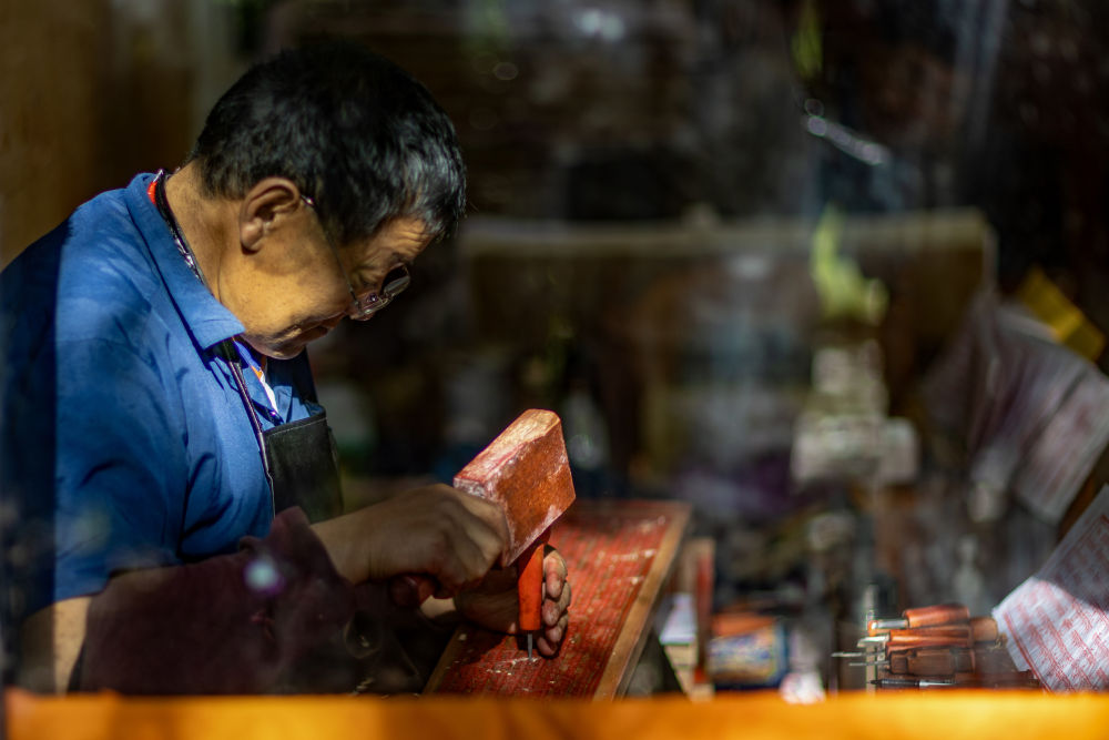 8月6日,一名雕刻師在雕刻中。西藏雪巴康雕版印刷制作技藝入選西藏自治區(qū)級非物質(zhì)文化遺產(chǎn)代表性項目名錄。