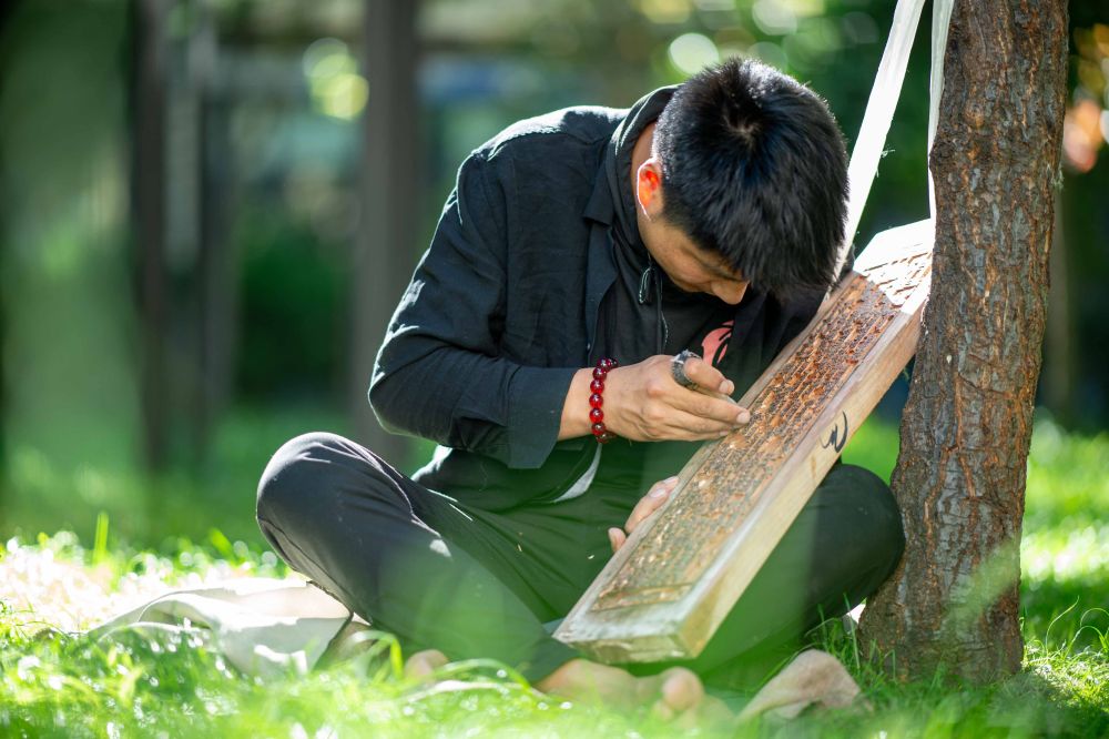 8月6日,一名雕刻師在工作中。西藏雪巴康雕版印刷制作技藝入選西藏自治區(qū)級非物質(zhì)文化遺產(chǎn)代表性項目名錄。