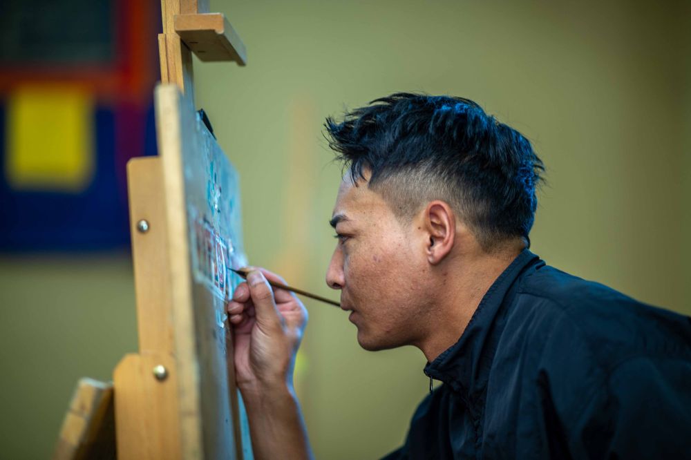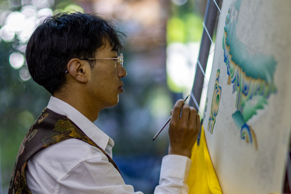 8月6日,一名畫師在繪制唐卡。藏族唐卡(齊吾崗派)入選國家級非物質(zhì)文化遺產(chǎn)代表性項目名錄。