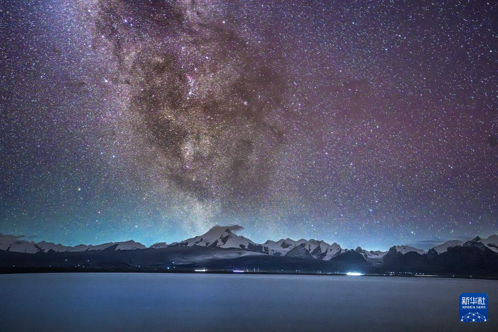 這是在佩枯錯(cuò)拍攝的銀河(8月14日攝)。新華社發(fā)(馬理朝攝)