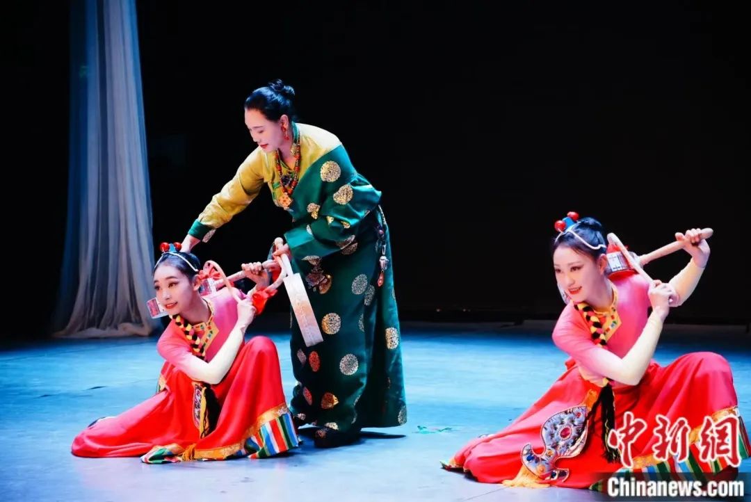 圖為2024年,西藏大學(xué)榮獲全國(guó)第七屆大學(xué)生藝術(shù)展演群舞組“一等獎(jiǎng)”及“最佳創(chuàng)作獎(jiǎng)”的舞蹈《甲諧·古韻》表演現(xiàn)場(chǎng)。西藏大學(xué)供圖
