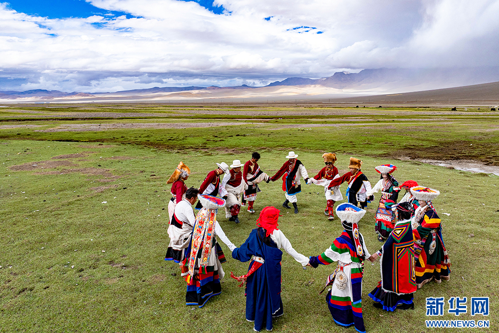 普蘭縣西德村村民在表演“果爾孜舞”(6月10日攝)。“果爾孜舞”有1300多年的歷史,傳承沿襲傳統(tǒng)的口口相傳。2011年,被列入國家級(jí)非物質(zhì)文化遺產(chǎn)名錄。新華網(wǎng) 旦增努布 攝