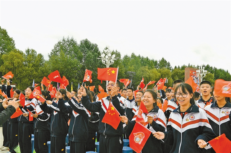 臺(tái)下的觀眾揮舞國旗。記者 旦增蘭澤 攝