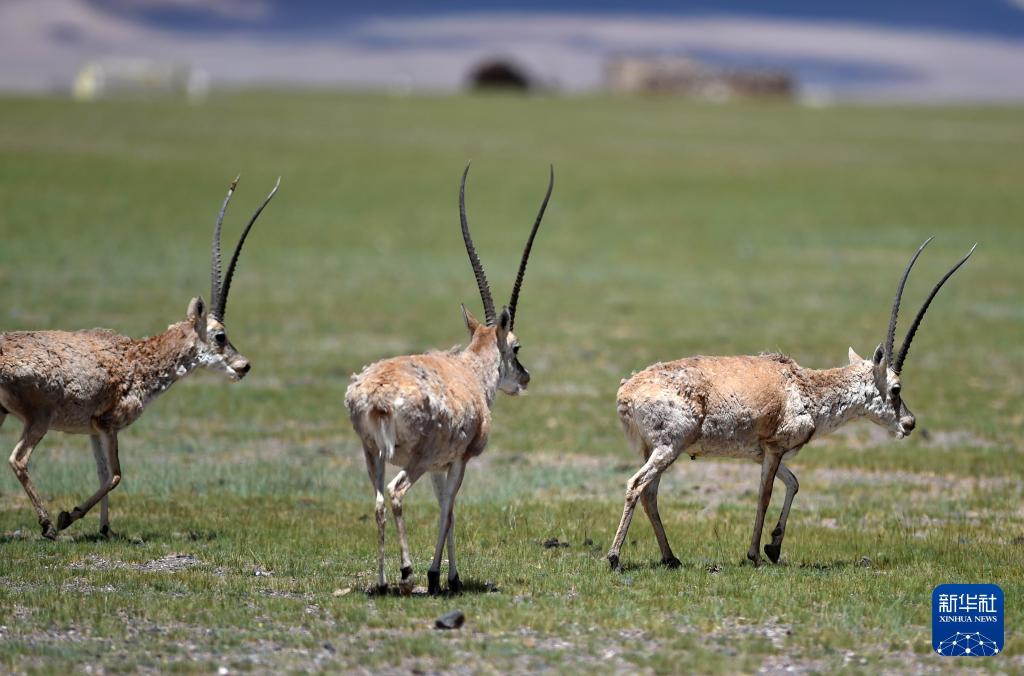2020年7月18日在西藏尼瑪縣榮瑪鄉(xiāng)附近拍攝的藏羚羊。