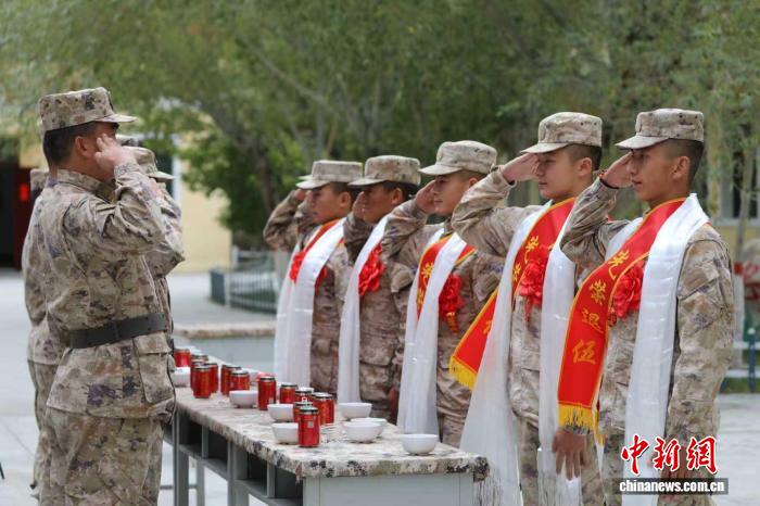 西藏阿里軍分區(qū)某邊防團什布奇邊防連9月4日為十余名服役期滿退役的老兵舉行歡送儀式。