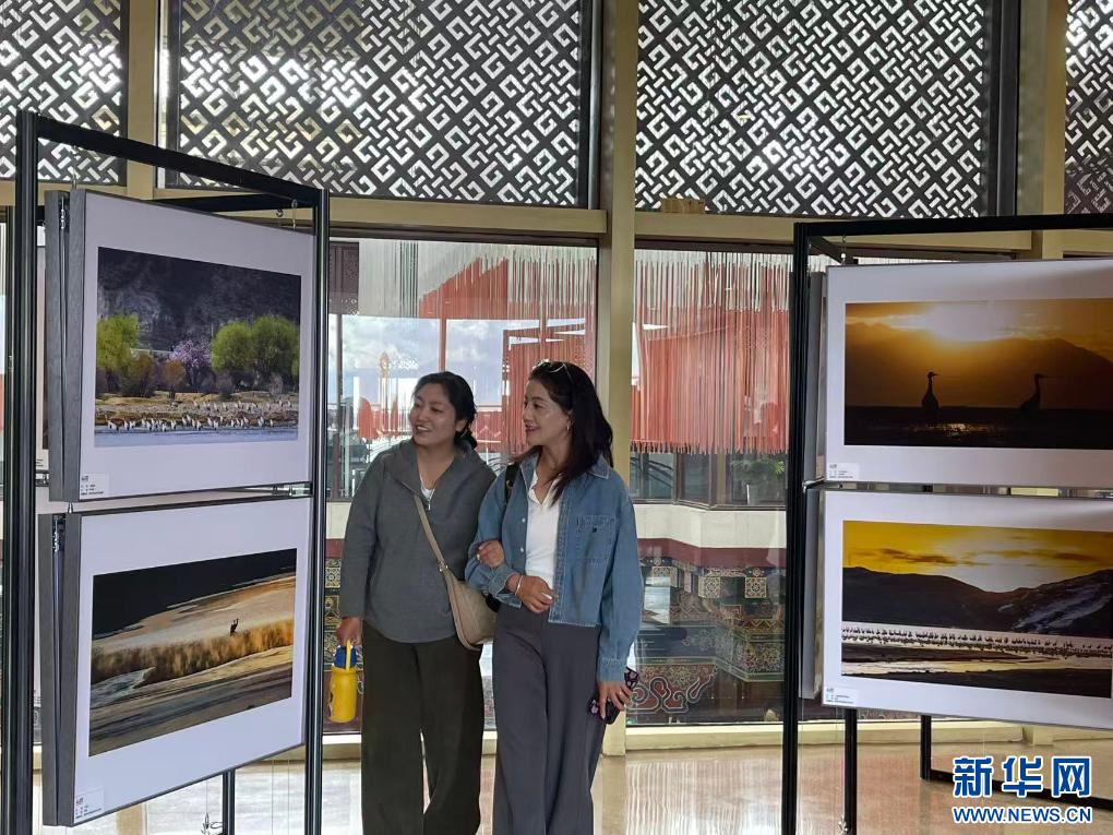 前來觀展的拉薩市民群宗在作品前駐足?!斑@些作品非常震撼,黑頸鶴在濕地嬉戲、在雪中佇立的畫面,讓我仿佛身臨其境??吹剿鼈冏杂蓷⒌臉幼?,讓我覺得每個人都應(yīng)該行動起來,共同保護好這片珍貴的家園。”她說。