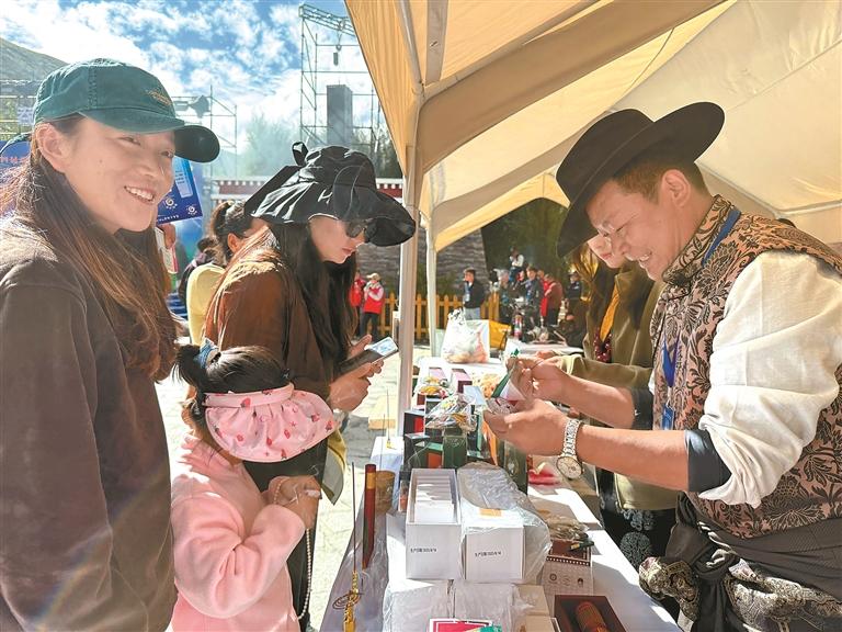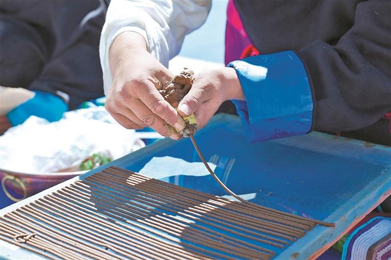 “今天我們帶來了6種藏香文創(chuàng)產(chǎn)品,分別有安神、提神、清潔空氣等系列,這些年我們除了在線下銷售,還要感謝尼木縣委、縣政府積極與線上各大平臺接洽,讓我們的藏香通過線上銷售,走出了尼木,讓北京、南京、天津等城市的客戶通過線上購買。所有藏香都是由縣委、縣政府組織的易地搬遷戶制作,這讓不少群眾不僅能就近就業(yè),還能照顧家里。特別感謝黨和政府對藏香保護和發(fā)展所做的各項工作?!笨h級非物質(zhì)文化遺產(chǎn)傳承人洛桑旺堆在活動現(xiàn)場說。