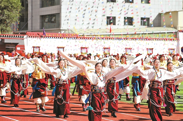 開(kāi)幕式上的群眾游行方隊(duì)。記者 平措朗加 溫凱 攝