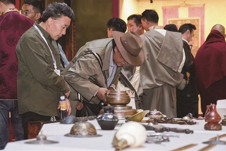 活動現(xiàn)場,近千名國內(nèi)外古物藏家、文博專家與市民游客齊聚,共同開啟這場跨越歷史與現(xiàn)代的文化盛宴。記者了解到,本次活動以“展覽、講座、集市、拍賣”四大板塊為核心,構(gòu)建起多層次的文化交流平臺。在展覽區(qū),大家可沉浸式感受古物的歲月沉淀;專業(yè)講座將邀請行業(yè)專家講解收藏知識,為藏家答疑解惑;集市板塊為供需雙方搭建直接對接的橋梁,滿足不同群體的收藏需求;而拍賣環(huán)節(jié)則將呈現(xiàn)精品對決,讓珍貴藏品找到心儀歸宿。西藏唐卡藝術(shù)博物館運營方、西藏博秀嘎瑪實業(yè)有限公司董事長根秋扎西介紹,值得一提的是本次拍賣為慈善拍賣,拍賣所得將全部用于支持西藏文化藝術(shù)發(fā)展。