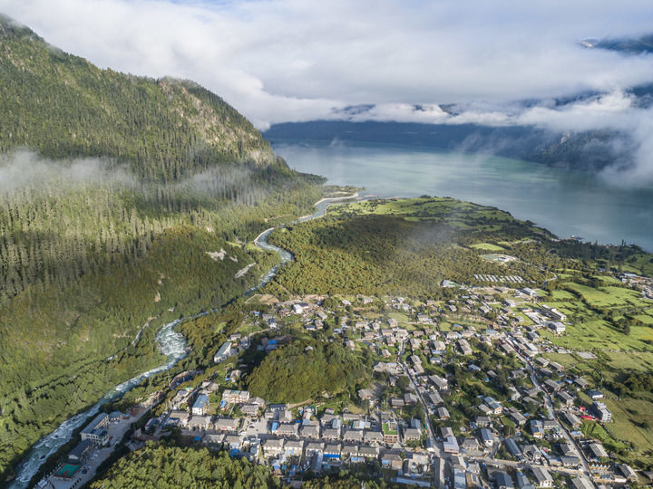 這是2023年7月20日拍攝的西藏林芝市工布江達(dá)縣錯(cuò)高鄉(xiāng)結(jié)巴村景色(無(wú)人機(jī)照片)。新華社記者 孫非 攝
