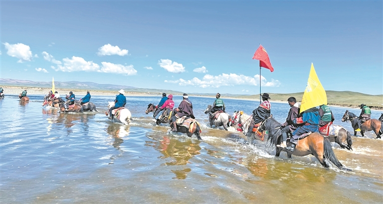 圖為三江源國(guó)家公園生態(tài)管護(hù)員在巡護(hù)途中。