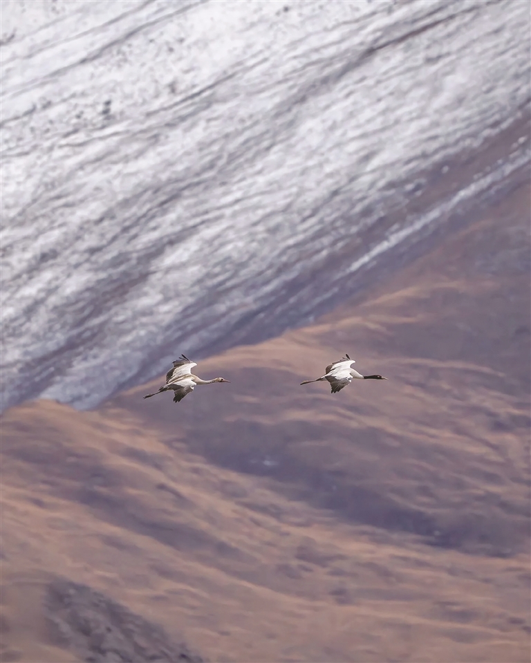 最初巡護時,沒有先進設備,全靠雙腳丈量、雙眼巡查,餓了啃干糧,冷了裹藏袍。如今保護力度加大,黑頸鶴數量逐年增長,越來越多村民也加入守護行列,沒人再驚擾這些“高原貴客”?!昂陬i鶴是吉祥象征,保護它們就是保護家園?!?5歲的頓珠次仁鬢角染霜,卻如他守護的老鶴般,初心未改。對他而言,黑頸鶴是“從小熟悉的老朋友”,林周既是自己的家,也是鶴群的家。這份守護,早已超越職責,成為人與自然和諧共生的生動注腳。