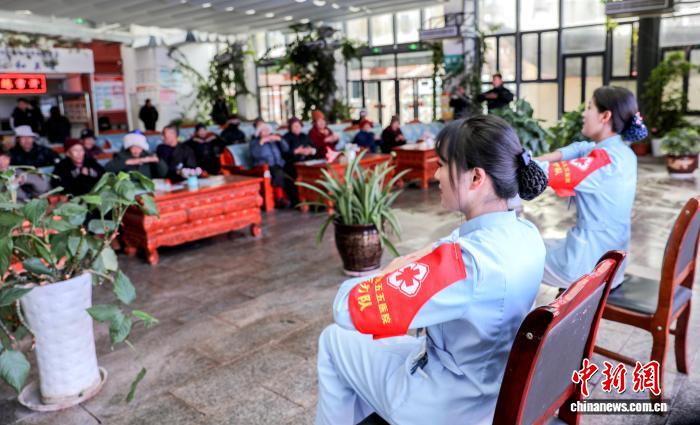 圖為醫(yī)護人員為特困人員集中供養(yǎng)中心的老人們傳授健康操。彭毅 供圖