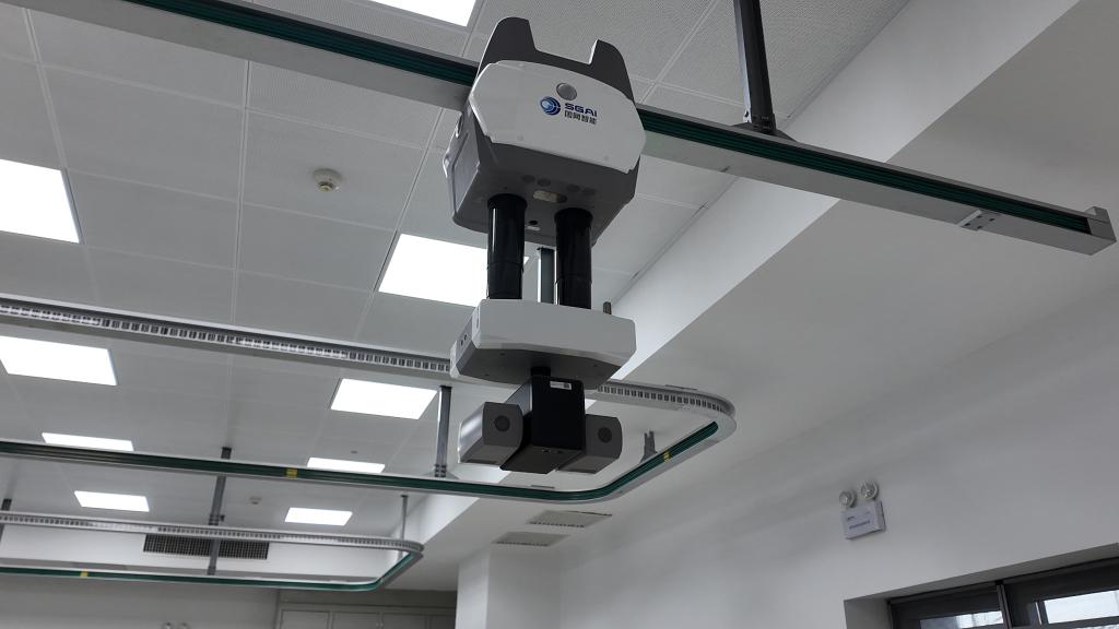 這是卡麥換流站控制保護設(shè)備室內(nèi)配備的軌道巡檢機器人。新華社記者 潘一景 攝