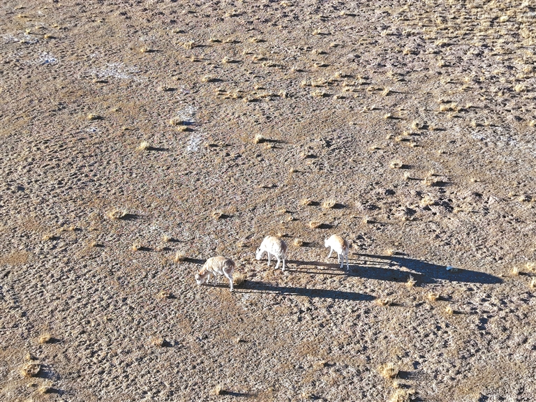 臨近12:00,車隊(duì)駛過乃日平錯(cuò)?!罢业健颉耍 币慌圆輬?chǎng)上3只藏原羚率先闖入視線,褐白相間的心形狀臀部斑塊在陽光下格外醒目。這一國(guó)家二級(jí)保護(hù)動(dòng)物的出現(xiàn),瞬間點(diǎn)燃了大家的熱情。