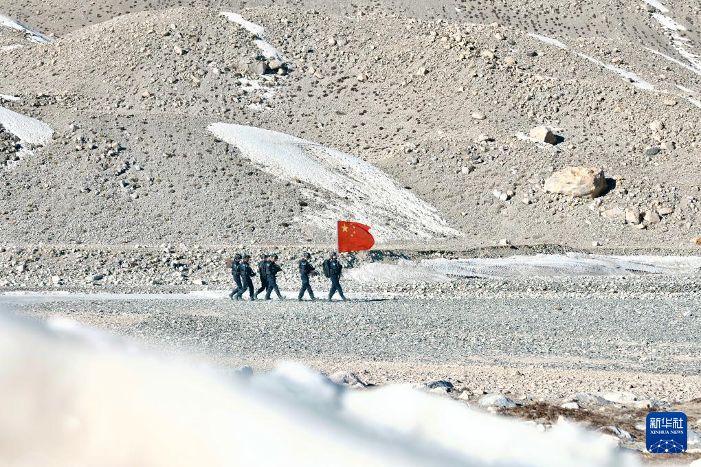 第一次走在巡邏線上,低溫與缺氧使他們呼吸變得急促。風(fēng)一陣陣掠過(guò)山谷,帶來(lái)刺骨的冷意。他們互相鼓勵(lì),“慢一點(diǎn)、穩(wěn)一點(diǎn)”。在雪峰前抬頭仰望,震撼與敬畏撲面而來(lái),也讓他們更真切地體會(huì)到“守在這里”的分量。