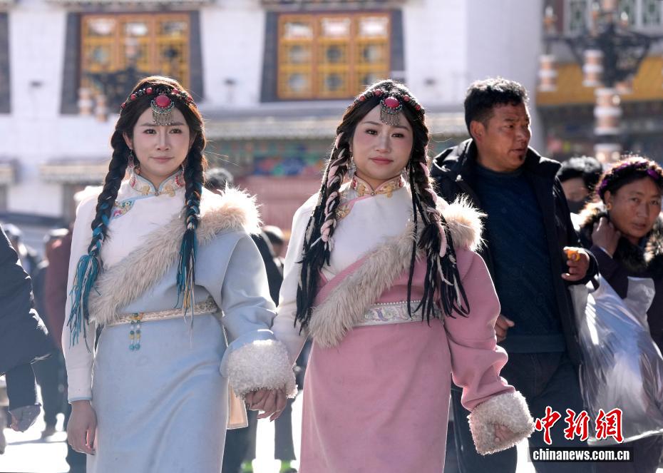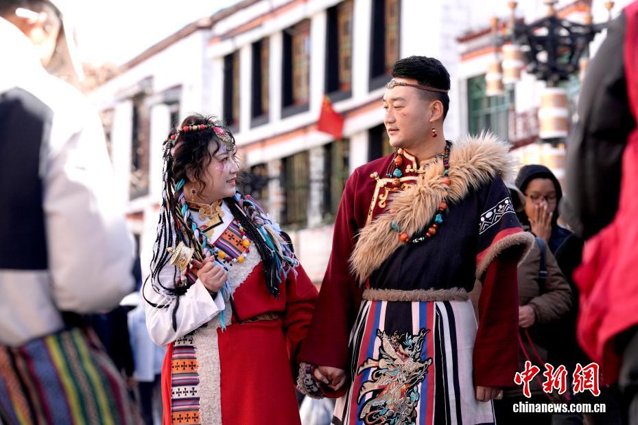 12月24日,游客在拉薩市八廓街拍攝藏服寫真。在第八輪“冬游西藏”活動持續(xù)推動下,不少游客選擇在冬季走進(jìn)西藏,感受雪域高原的獨(dú)特魅力。除了免費(fèi)游覽布達(dá)拉宮、羅布林卡等景區(qū),體驗藏服寫真也成為大多數(shù)游客行程中的“必選項”。中新社記者 李林 攝