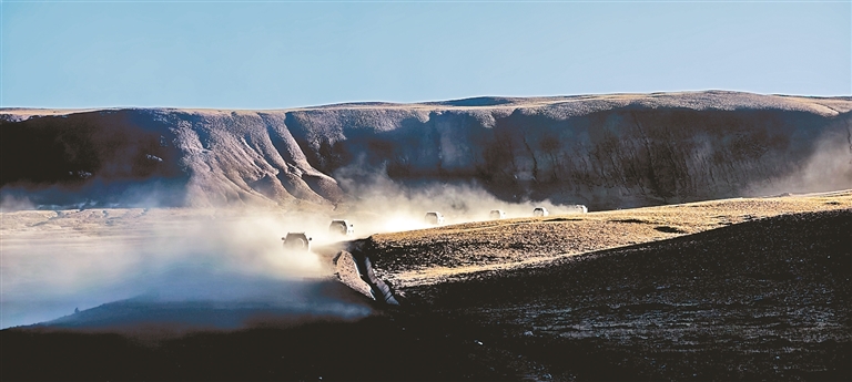 圖為巡護(hù)隊員們迎著清晨的陽光出發(fā)。通訊員 格?!z