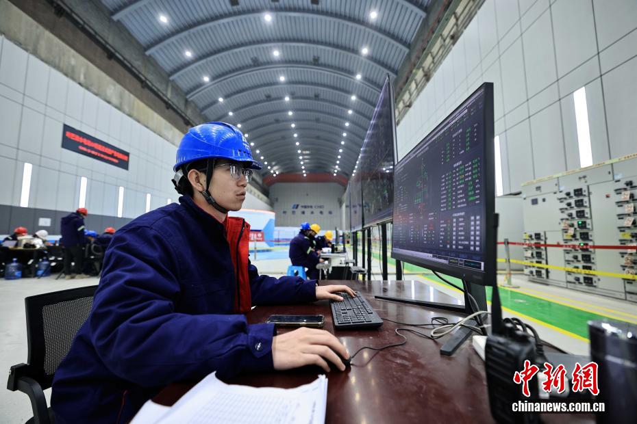 12月27日,中國在建海拔最高雙曲拱壩電站——葉巴灘水電站首批機組正式投產發(fā)電。葉巴灘水電站位于四川省甘孜州白玉縣與西藏自治區(qū)貢覺縣交界的金沙江干流上。水電站總裝機容量224萬千瓦,此次首批投產發(fā)電的機組為4號和3號機組。圖為12月27日,工作人員在現(xiàn)場監(jiān)測機組運行狀態(tài)及各項參數(shù)。中新社記者 王磊 攝