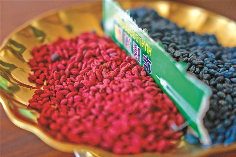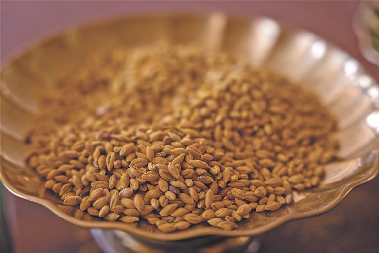 清洗后曬干上色的青稞,用于制作青稞文創(chuàng)產品。