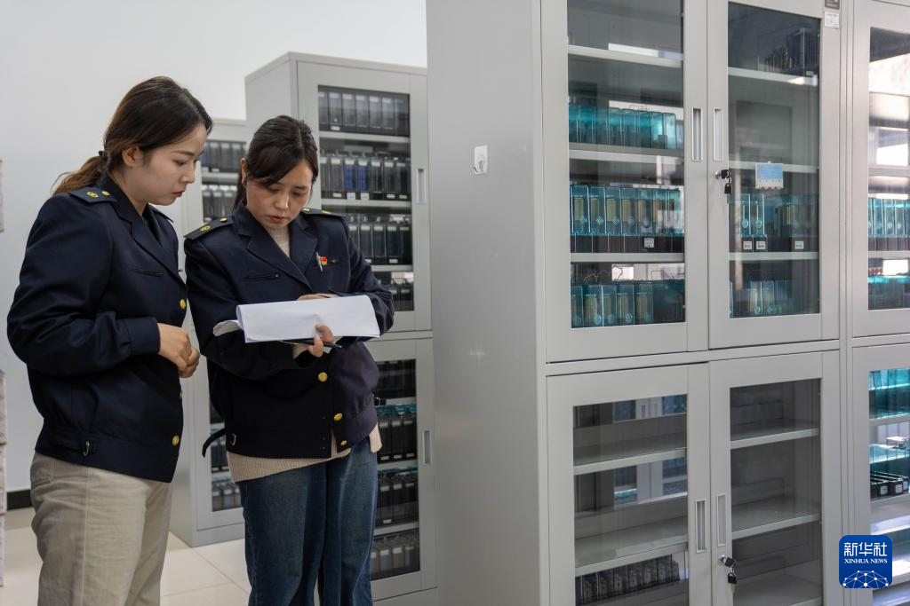 1月6日,拉薩基礎設施段電務專修車間繼電器檢修工區(qū)的信號工路東燕(左)和德吉卓瑪在檢查繼電器庫房臺賬。新華社記者 旦增尼瑪曲珠 攝