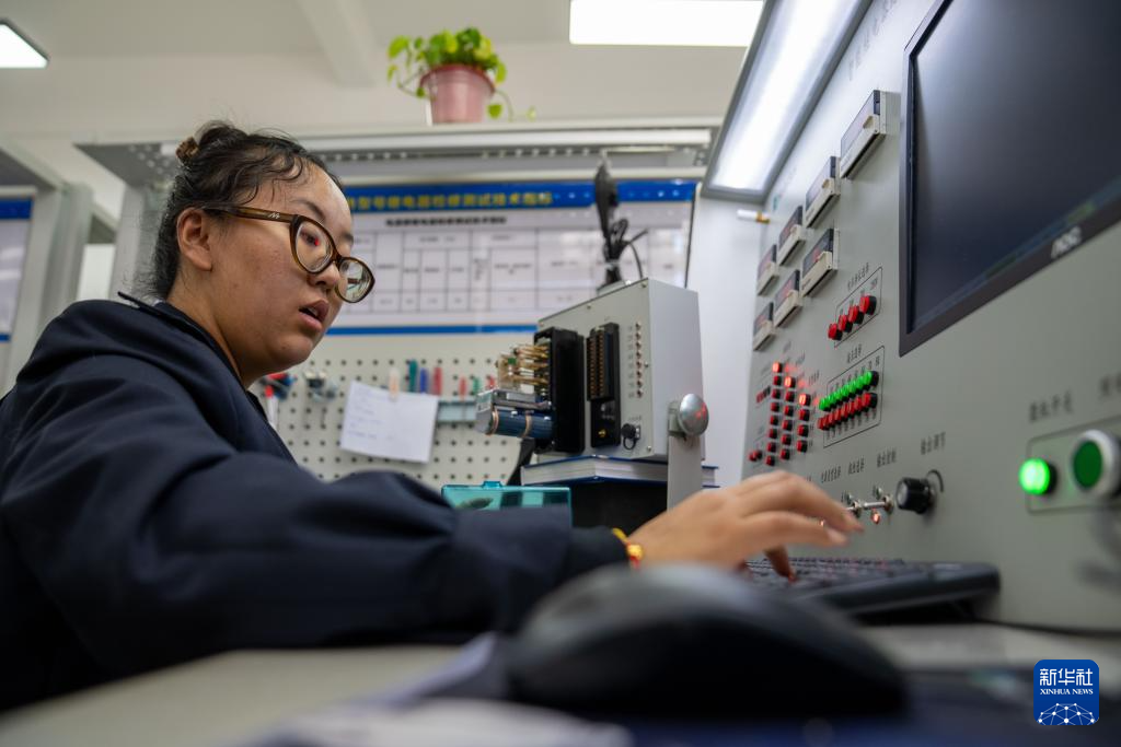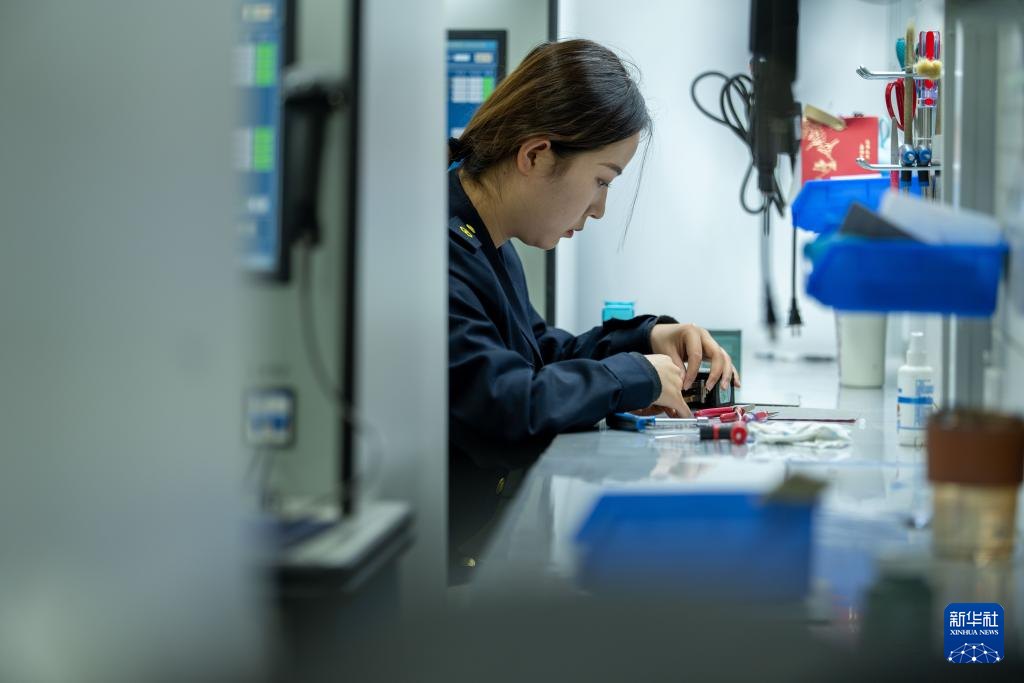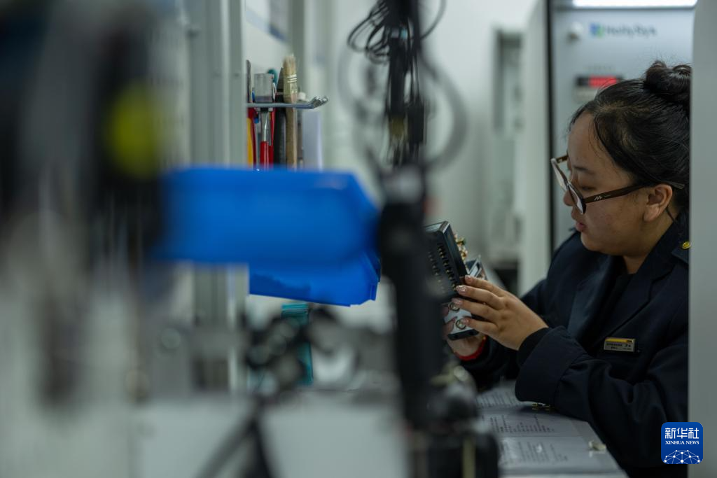 1月6日,拉薩基礎設施段電務專修車間繼電器檢修工區(qū)的信號工德吉卓瑪在檢測繼電器。新華社記者 旦增尼瑪曲珠 攝