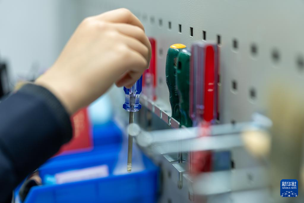 1月6日,拉薩基礎設施段電務專修車間繼電器檢修工區(qū)的信號工路東燕在拿取螺絲刀。新華社記者 旦增尼瑪曲珠 攝