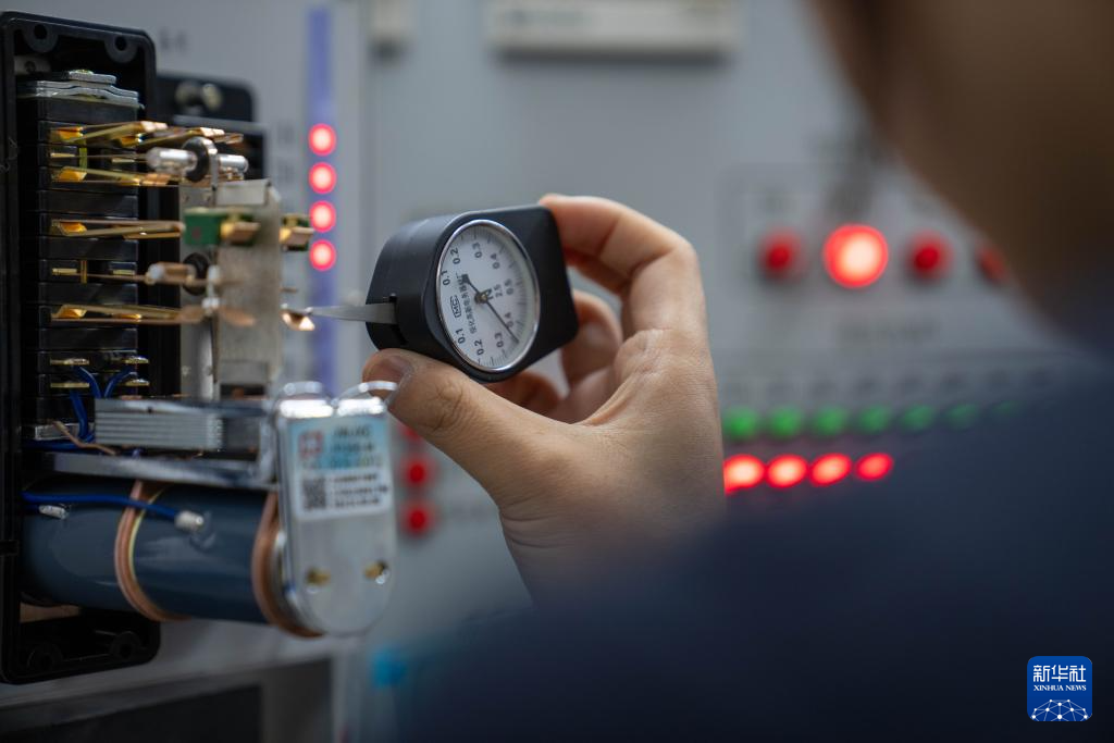 1月6日,拉薩基礎設施段電務專修車間繼電器檢修工區(qū)的信號工丁增央金在測試繼電器節(jié)點壓力。新華社記者 旦增尼瑪曲珠 攝