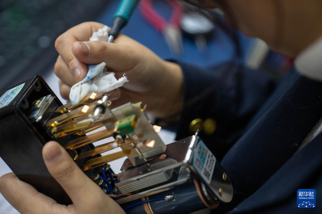 1月6日,拉薩基礎設施段電務專修車間繼電器檢修工區(qū)的信號工路東燕在擦拭繼電器節(jié)點。新華社記者 旦增尼瑪曲珠 攝