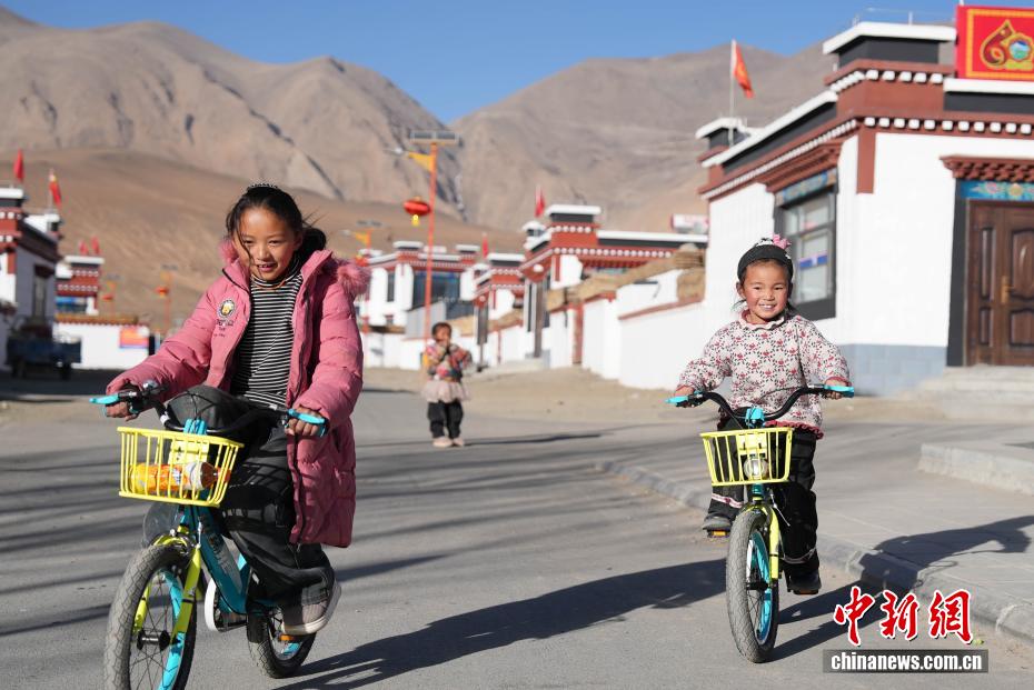 2025年1月7日,西藏日喀則市定日縣發(fā)生6.8級(jí)地震,造成重大人員傷亡。地震發(fā)生后,30天內(nèi)完成民房重建規(guī)劃、選址、設(shè)計(jì),90天內(nèi)完成災(zāi)后恢復(fù)重建總體方案編制和報(bào)審,震后100天內(nèi)進(jìn)入項(xiàng)目全面實(shí)施階段,220天實(shí)現(xiàn)災(zāi)后恢復(fù)重建首批入住目標(biāo),295天實(shí)現(xiàn)重建民房、維修加固民房基本建成并交付受災(zāi)民眾,在海拔4300米以上極度缺氧、建材短缺、施工力量薄弱的地震災(zāi)區(qū),創(chuàng)造了“當(dāng)年受災(zāi)、當(dāng)年入住”的重建奇跡。如今,民眾生產(chǎn)生活恢復(fù)秩序,他們將在新居內(nèi)迎接第一個(gè)日喀則農(nóng)事新年。圖為2026年1月5日,定日縣長所鄉(xiāng)森嘎村,兩個(gè)小女孩在新房前騎車。貢確 攝