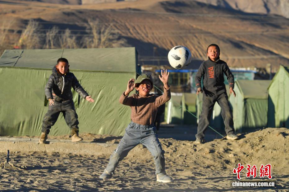 2025年1月7日,西藏日喀則市定日縣發(fā)生6.8級(jí)地震,造成重大人員傷亡。地震發(fā)生后,30天內(nèi)完成民房重建規(guī)劃、選址、設(shè)計(jì),90天內(nèi)完成災(zāi)后恢復(fù)重建總體方案編制和報(bào)審,震后100天內(nèi)進(jìn)入項(xiàng)目全面實(shí)施階段,220天實(shí)現(xiàn)災(zāi)后恢復(fù)重建首批入住目標(biāo),295天實(shí)現(xiàn)重建民房、維修加固民房基本建成并交付受災(zāi)民眾,在海拔4300米以上極度缺氧、建材短缺、施工力量薄弱的地震災(zāi)區(qū),創(chuàng)造了“當(dāng)年受災(zāi)、當(dāng)年入住”的重建奇跡。如今,民眾生產(chǎn)生活恢復(fù)秩序,他們將在新居內(nèi)迎接第一個(gè)日喀則農(nóng)事新年。圖為2025年1月10日,在西藏日喀則市定日縣長所鄉(xiāng)森嘎村安置點(diǎn),夕陽下,孩子們分組開展點(diǎn)球大戰(zhàn)。貢確 攝