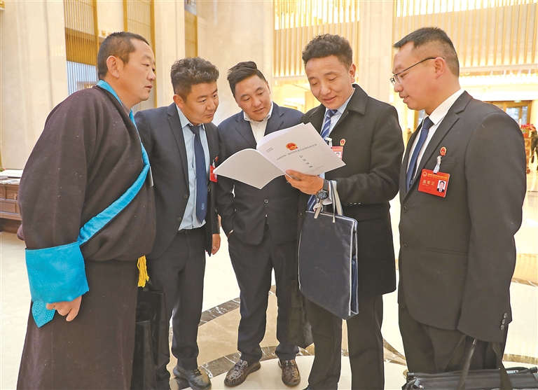 圖為山南市人大代表一起了解會(huì)議議程。