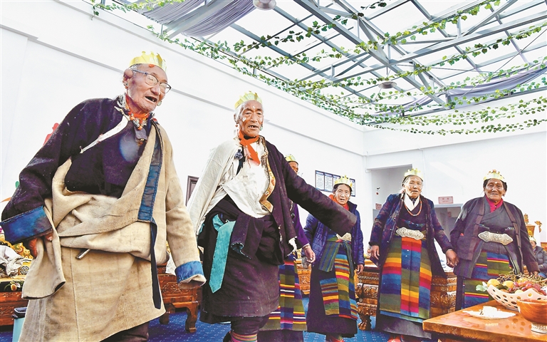 從基礎(chǔ)設(shè)施的堅實保障,到尋常人家的溫暖日常,發(fā)展的溫度在細節(jié)中流淌。在海拔4300米的定結(jié)縣切村幸福院,老人們正圍坐擲著“秀茲”,手捧溫?zé)岬乃钟筒琛!霸豪镌O(shè)施齊全,生活很充實?!?8歲的堅參笑著說。最讓他安心的是定期上門的醫(yī)療服務(wù)——醫(yī)生常來測量血壓,守護著老人們的健康。這溫馨一幕,正是“十五五”開局之年西藏養(yǎng)老服務(wù)保障扎實落地的縮影,讓“老有所養(yǎng)、老有所樂”在雪域高原成為看得見、摸得著的幸福。