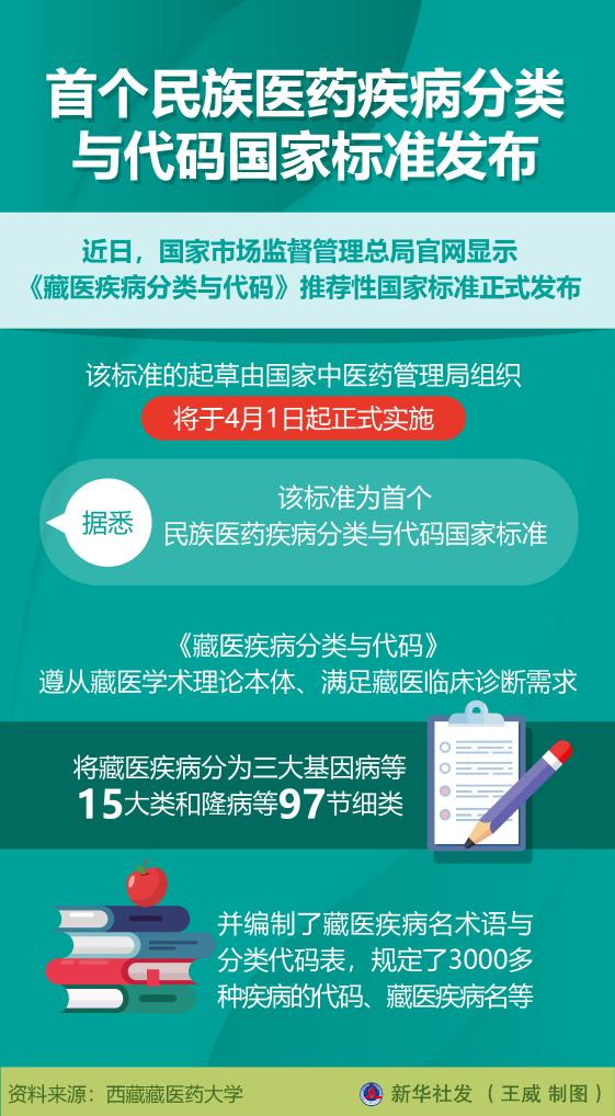 近日,國家市場監(jiān)督管理總局官網(wǎng)顯示《藏醫(yī)疾病分類與代碼》推薦性國家標準正式發(fā)布。記者從參與起草的西藏藏醫(yī)藥大學了解到,該標準的起草由國家中醫(yī)藥管理局組織,將于4月1日起正式實施。據(jù)悉,該標準為首個民族醫(yī)藥疾病分類與代碼國家標準。