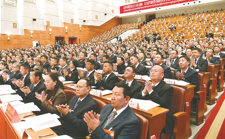報(bào)告字字鏗鏘,句句有力,一項(xiàng)項(xiàng)成績(jī)見證了西藏實(shí)干篤行、砥礪奮進(jìn)的發(fā)展歷程。代表們專注傾聽,時(shí)而凝神思考,時(shí)而勾畫圈點(diǎn),會(huì)場(chǎng)內(nèi)不時(shí)響起熱烈掌聲。