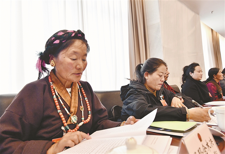 日喀則市代表團(tuán)分組審議政府工作報(bào)告。記者 旦增蘭澤 攝