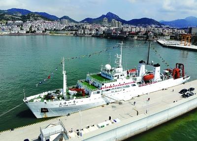 7月31日,在山東省青島市國(guó)家海洋局北海分局科考基地碼頭,“大洋一號(hào)”科考船準(zhǔn)備起航執(zhí)行中國(guó)大洋48航次科學(xué)考察任務(wù)。新華社記者 李紫恒攝