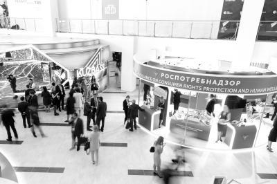 9月11日,俄羅斯符拉迪沃斯托克,人們在參觀東方經(jīng)濟(jì)論壇上的展位。新華社發(fā)